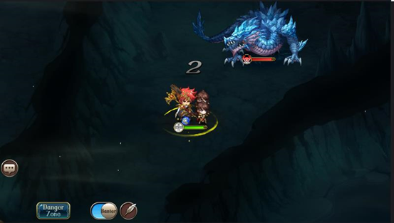Ledin should stand in the position shown in the picture, so he can exit and enter the danger zone. Your other heroes should be two blocks from Ledin, as the Ice Dragon will use its AoE skill even when approached by a single hero. Let Ledin take a round of damage first, and then your entire team can start to put the pressure on the Ice Dragon from the next turn onward.